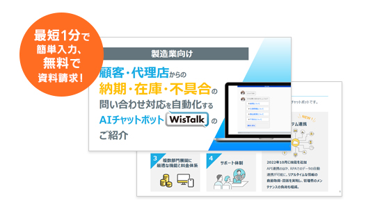 顧客・代理店からの問い合わせ対応向け「WisTalk」の資料請求フォーム