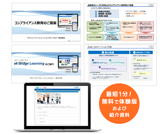 コンプライアンス関連教材やコンプライアンスパックを始めとしたサービスプランについて良く分かる資料がダウンロードできます。