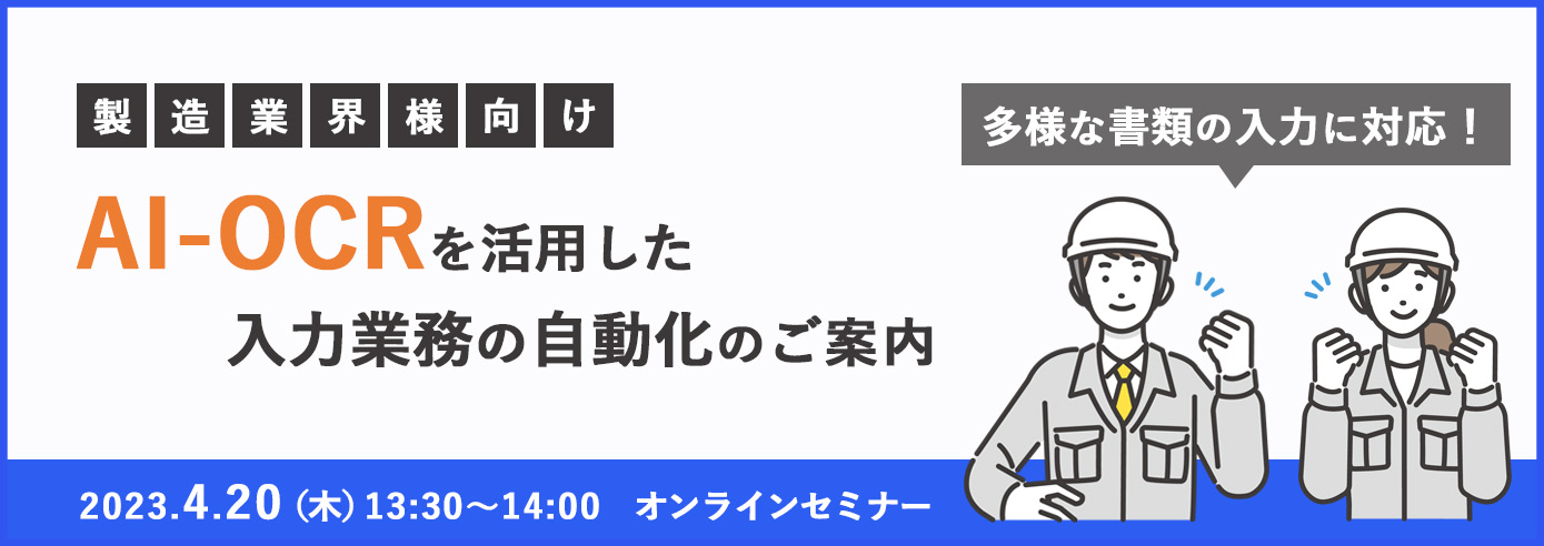 そこで本セミナーでは、製造業での多様な書類の入力業務を踏まえ、AI-OCRを活用した入力業務の自動化についてご紹介します。