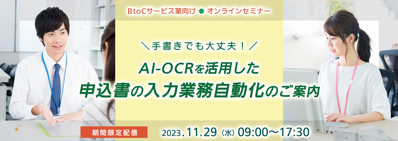 そこで本セミナーでは、手書きで記載されることも多い申込書の、さまざまな現場での処理業務を踏まえ、AI-OCRを活用した入力業務の自動化についてご紹介します。