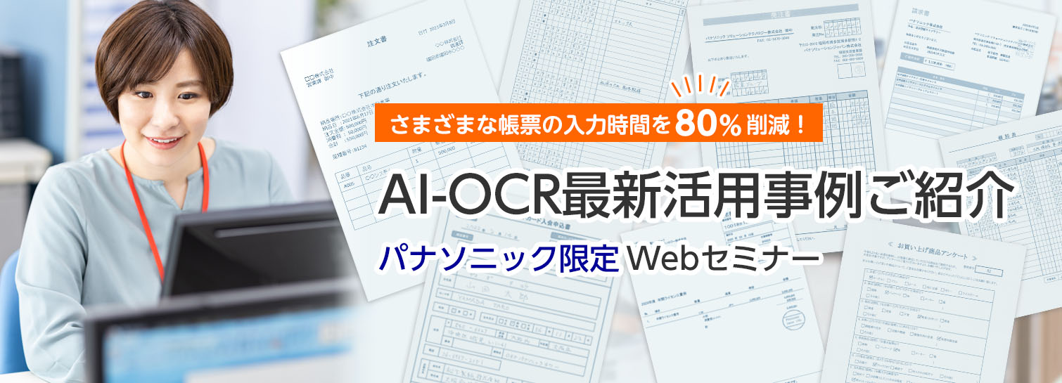 | 講演内容 | ご紹介事例1:出張精算処理や請求書処理にAI-OCRを活用。 証憑の目視確認業務の60%以上を省力化 ご紹介事例2:不特定多数の取引先からの注文書をAI-OCRで認識、 明細行の入力作業時間を80%削減 <視聴環境> Web形式のセミナーを視聴できる環境が必要です。 ・インターネットに接続できるPCをご用意ください ・専用のURLより、ブラウザーからご参加をお願いします (推奨ブラウザー:Google Chrome、Microsoft Edge) ・Microsoft社のTeamsを使用します(プラグインなどの導入は不要です) |