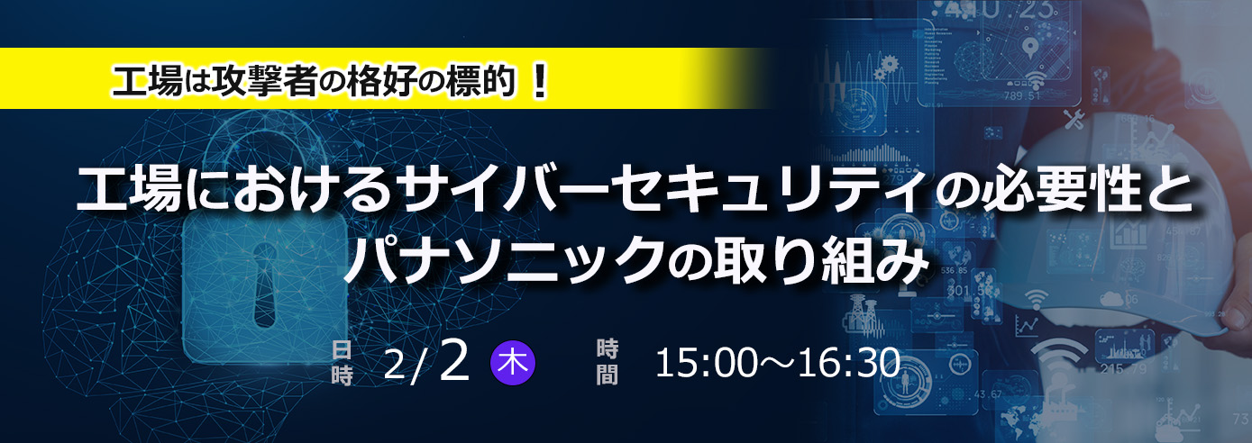| 講演内容 | 第一部:工場におけるサイバーセキュリティリスクとパナソニックの取り組み 第二部:機械学習を利用した最先端の工場内インシデント検知手段(Darktrace社) <視聴環境> Web形式のセミナーを視聴できる環境が必要です。 ・インターネットに接続できるPCをご用意ください ・専用のURLより、ブラウザーからご参加をお願いします (推奨ブラウザー:Google Chrome、Microsoft Edge) ・Microsoft社のTeamsを使用します(プラグインなどの導入は不要です) |